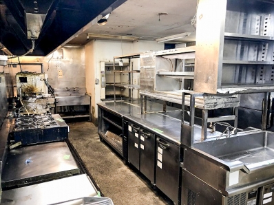 約250坪の大型飲食店の閉店に伴い、厨房機器や店舗什器の買取撤去を実施しました。当初、全て廃棄予定であった残置物を可能な限り買い取ることで、不要な廃棄費用を減らし、撤去にかかる総工費を削減することができました。
