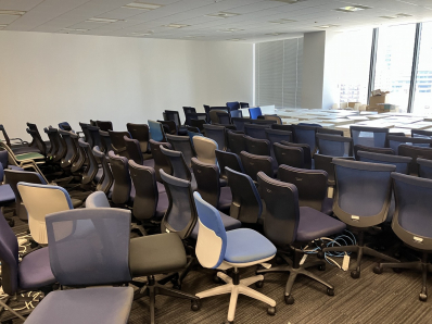 3フロア分のオフィス什器、配線類の買取撤去を行いました。オフィス什器を中古品として買い取るだけでなく、廃棄予定であった電源タップ、